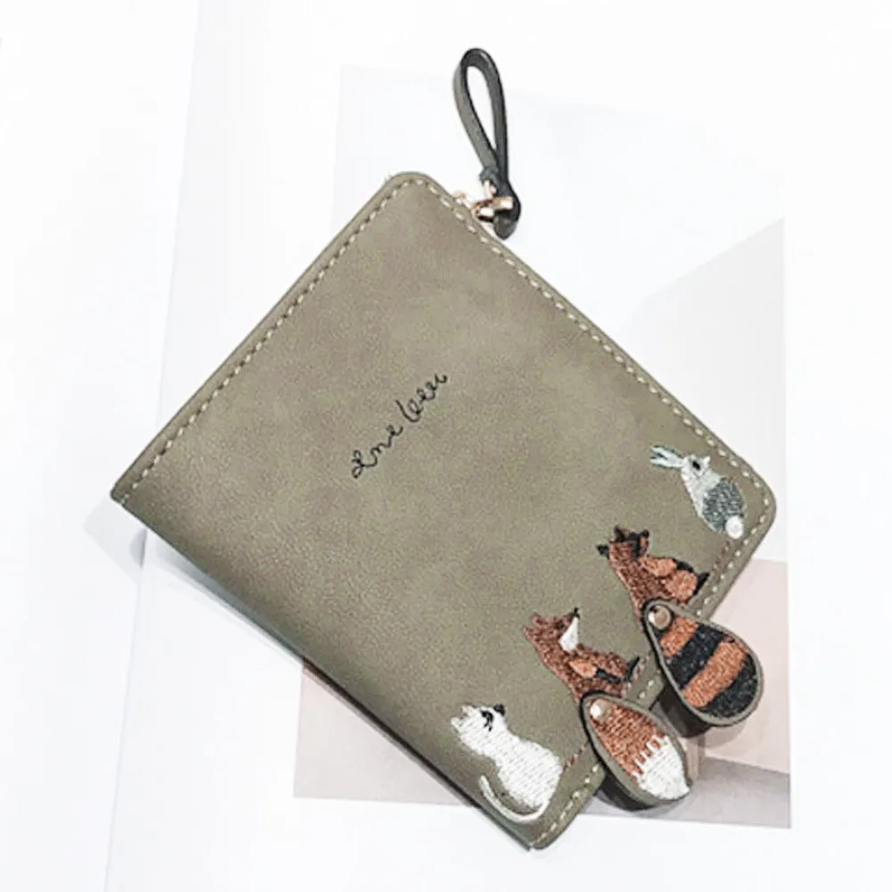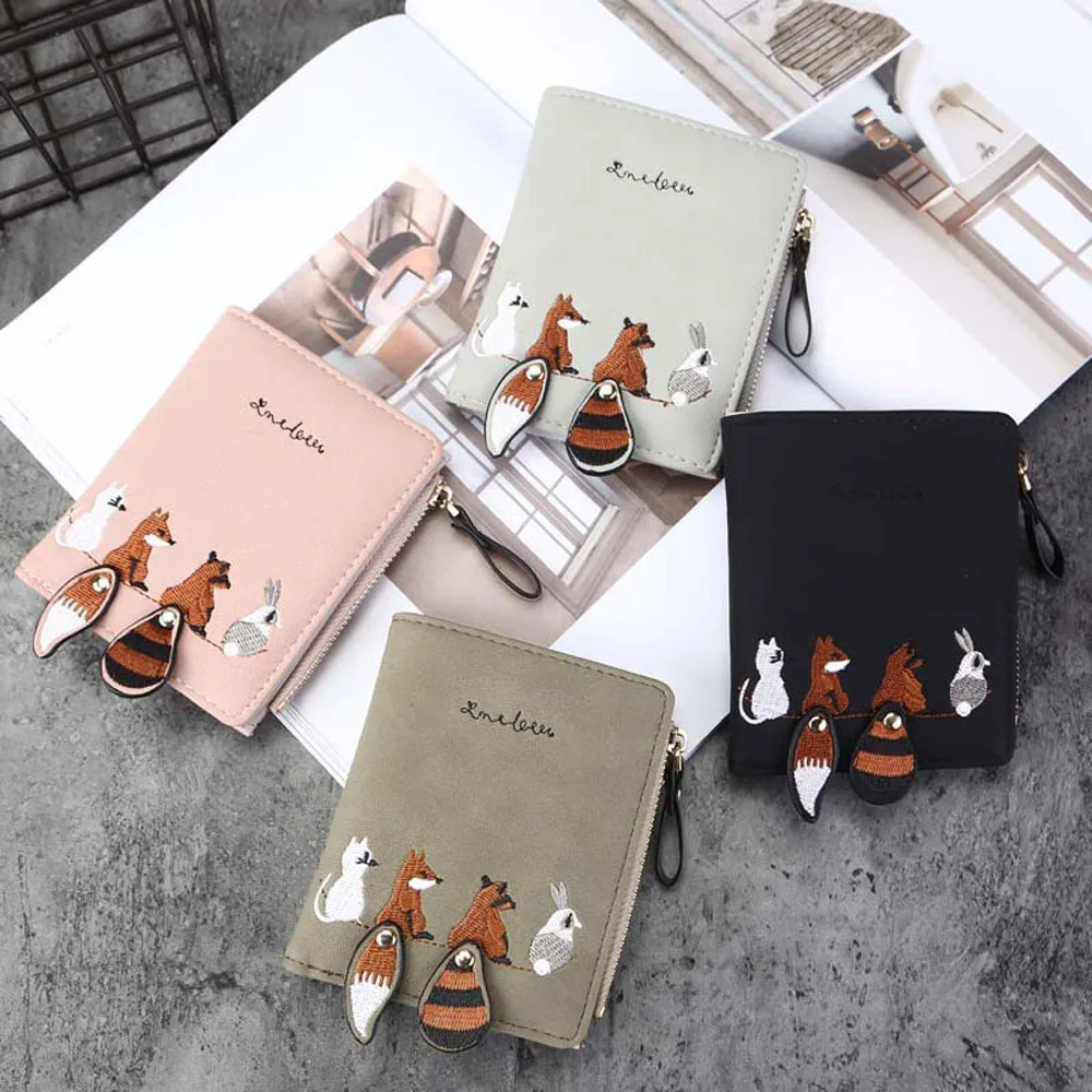 Женские кошельки и кошельки, Модный женский кошелек с милыми мультяшными животными, маленький кошелек на молнии, отделение для карт