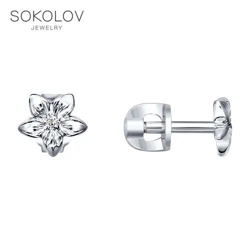 Серьги-пусеты SOKOLOV из серебра с фианитамиИзящные фигурные пусеты из серебра понравятся поклонницам нескучной классики. Очаровательный дизайн, вдохновлённый трогательной красотой садовых цветов, поможет внести изюминку в базовый набор украшений. Миниатюрные фианиты придают серьгам большую выразительность за счёт отблесков на серебряных лепестках. Для сияющих акцентов вашего стиля!