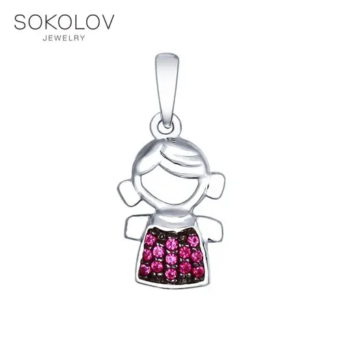 Подвеска Девочка с красными фианитами SOKOLOV, Серебро, 925, Оригинальная продукция