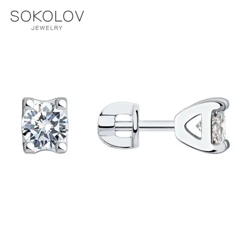 Женские серьги-пусеты SOKOLOV из серебра с фианитами, Серебро, 925,...