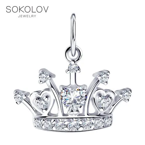 Серебряная подвеска Корона с фианитами SOKOLOV, Серебро, 925, Оригинальная продукция