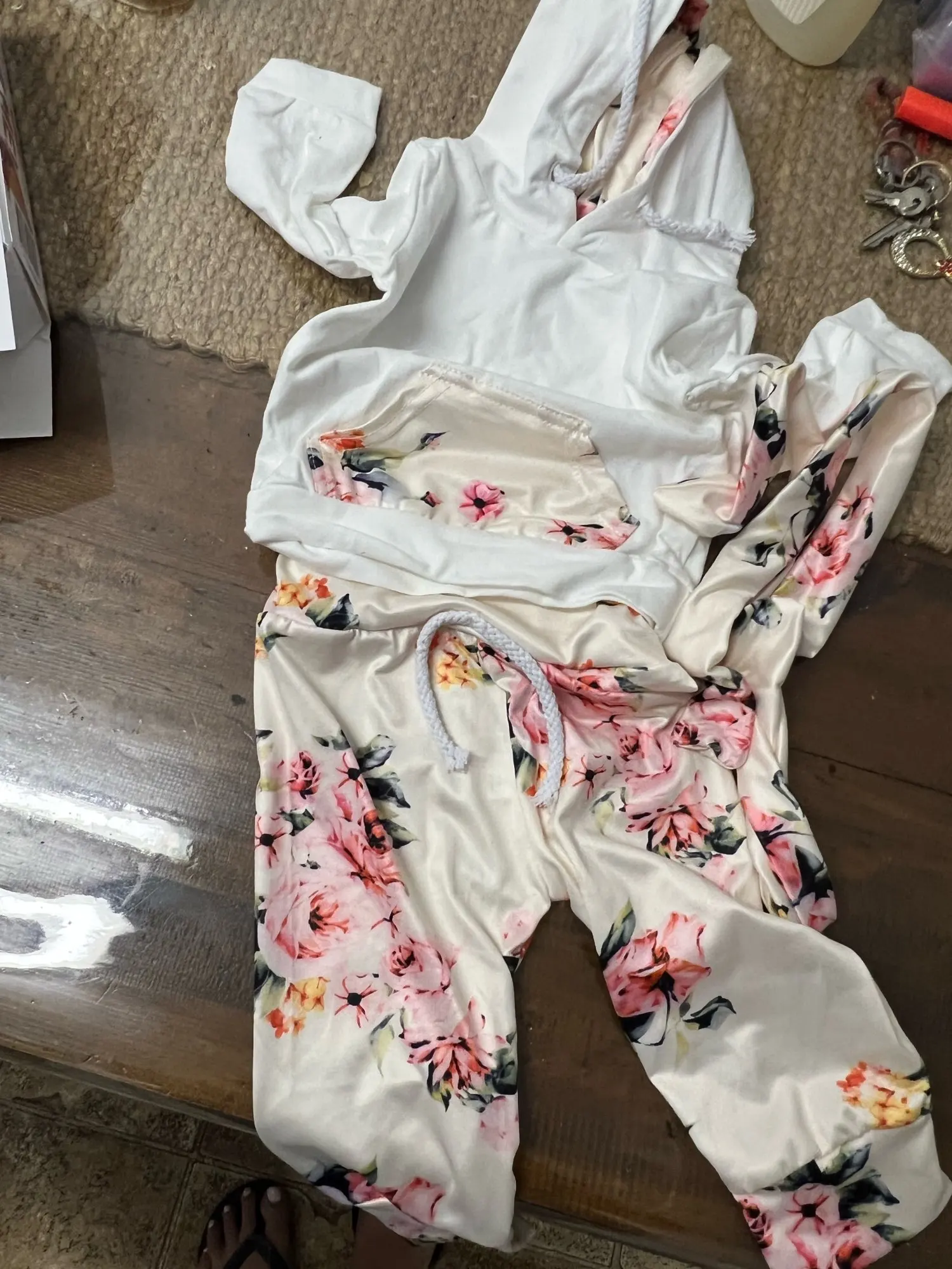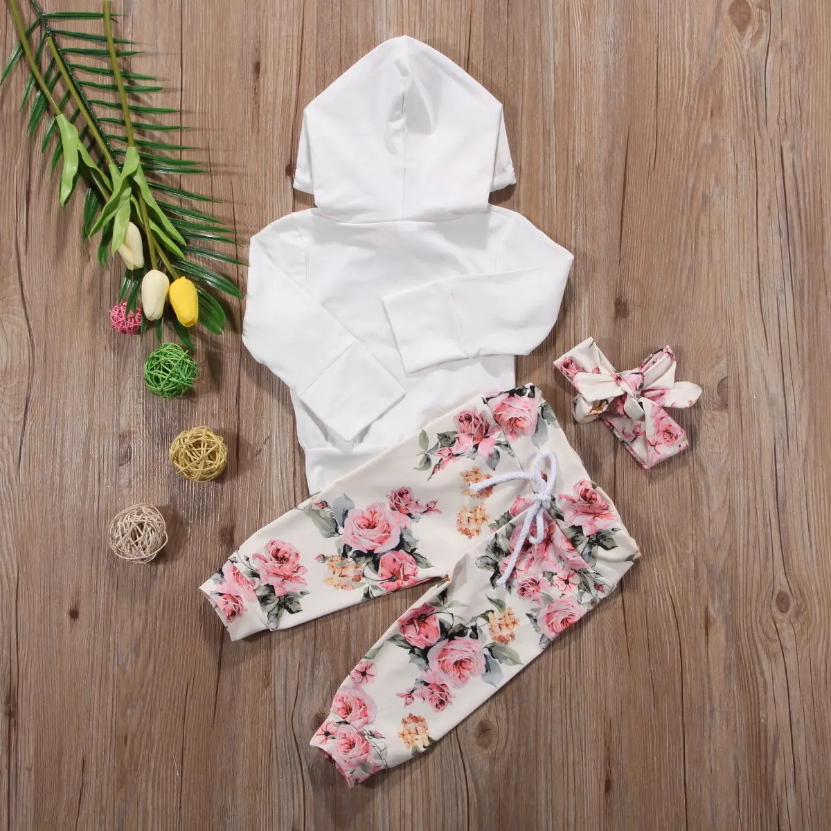 Цветочный наряд спортивный костюм для новорожденных девочек, топ с капюшоном + леггинсы, повязка на голову, комплект из 3 предметов