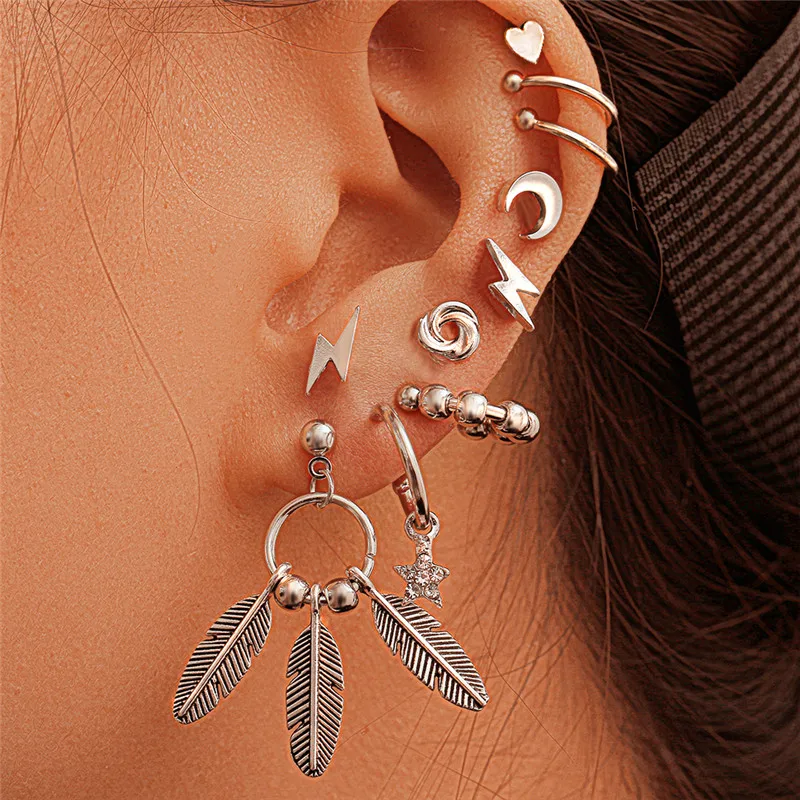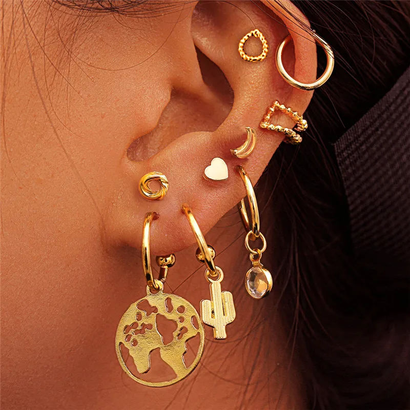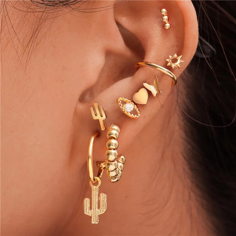 Набор сережек-гвоздиков в богемном стиле для женщин, милая простота, геометрический дизайн, кактус, глаз, звезда, месяц, крошечные серьги