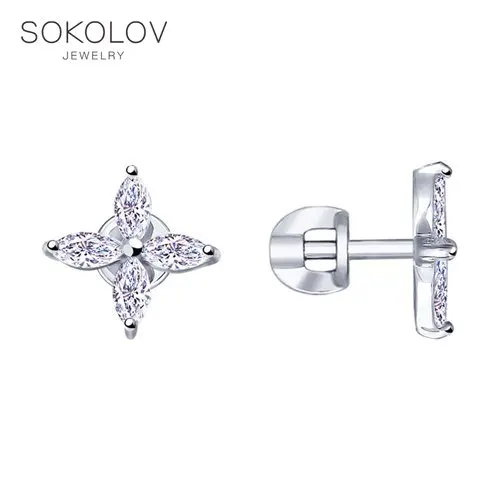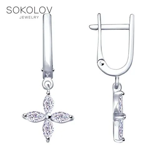 Серьги SOKOLOV из серебра с фианитами, Серебро, 925, Женские, Серьги 2022 тренд, Оригинальная продукция