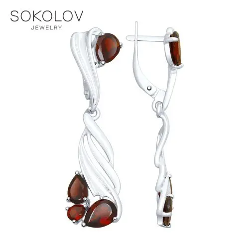Серьги SOKOLOV из серебра с гранатами, Серебро, 925, Женские, Серьги 2022 тренд, Оригинальная продукция