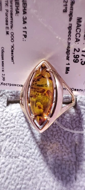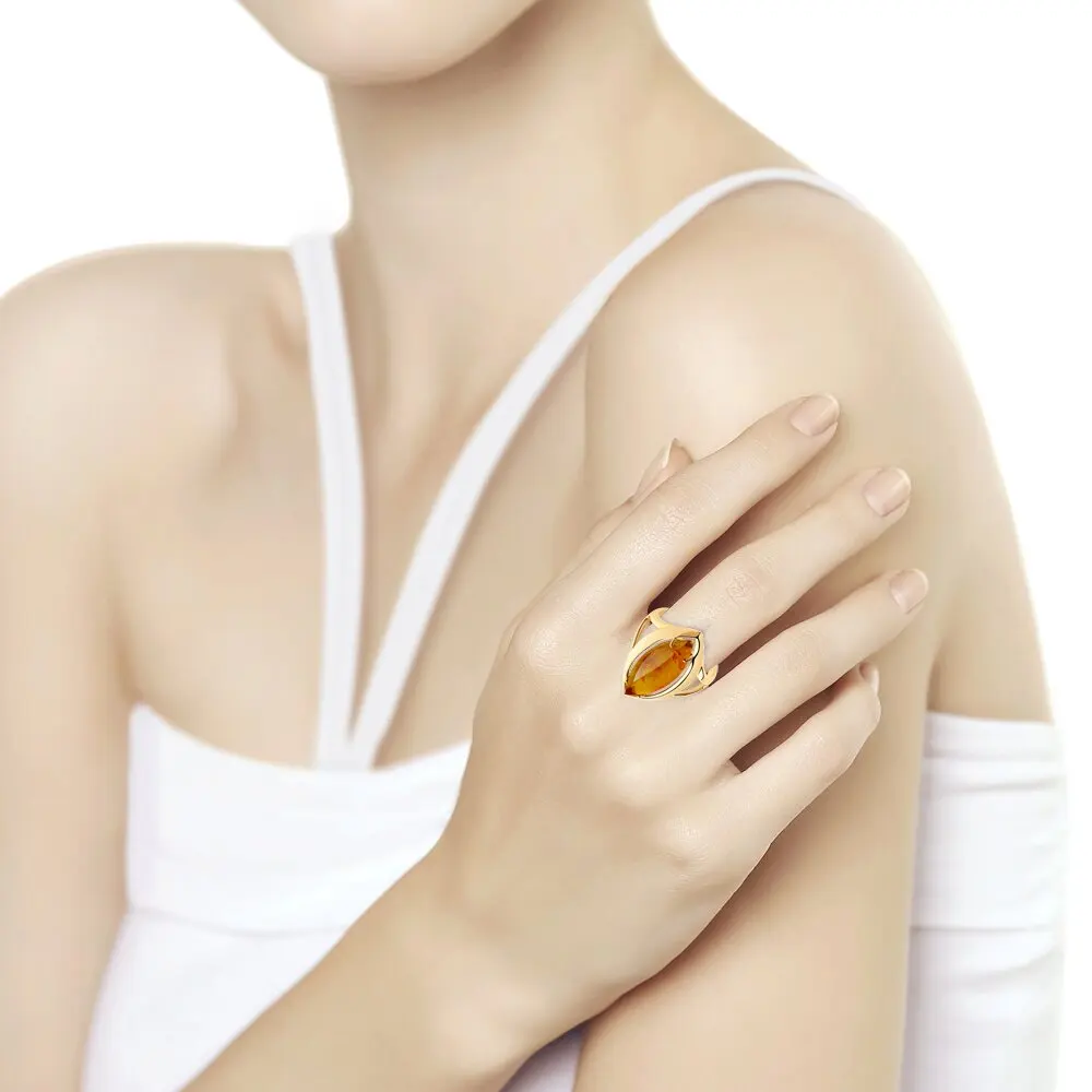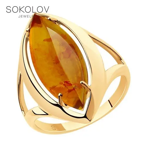 Кольцо SOKOLOV из золочёного серебра с янтарём