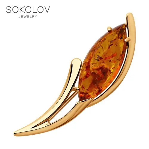 Брошь SOKOLOV из серебра с янтарём, Серебро, 925, Оригинальная продукция