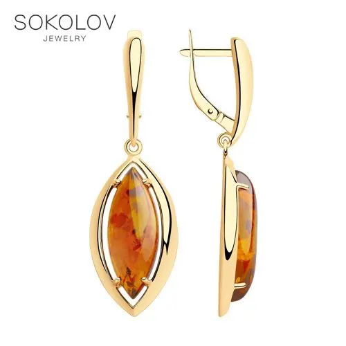 Серьги SOKOLOV из серебра с янтарём, Серебро, 925, Женские, Серьги 2022 тренд, Оригинальная продукция