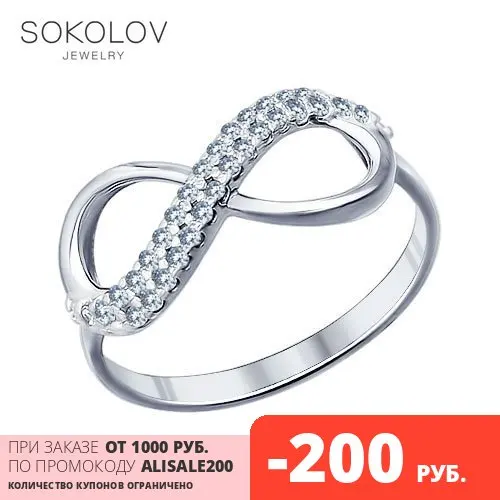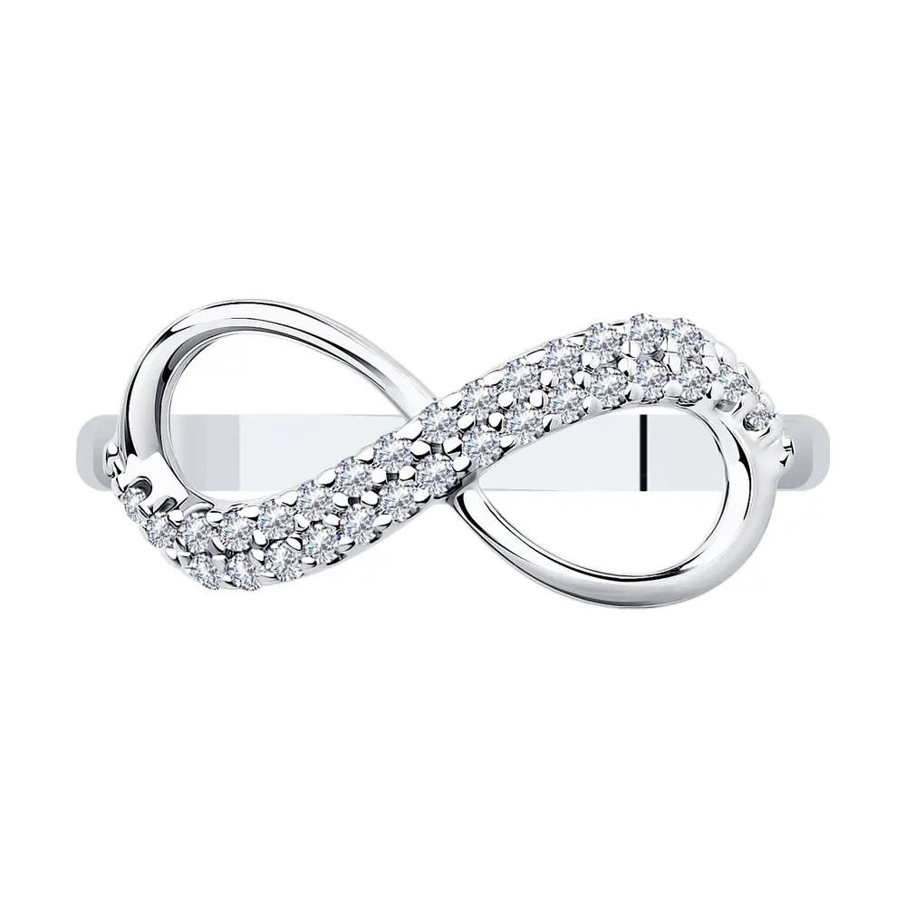 Кольцо «Бесконечность» SOKOLOV из серебра с фианитамиКольцо «Бесконечность» из серебра с фианитами способно многое рассказать о своей обладательнице, отразить её стремление к постоянному росту и безграничному самосовершенствованию. Утончённый дизайн – настоящая классика символизма. Купите кольцо, которое станет для вас не только ювелирным украшением, но и приносящим удачу талисманом или символом верности. Украшение порадует вас изящным дизайном и привлекательной ценой.