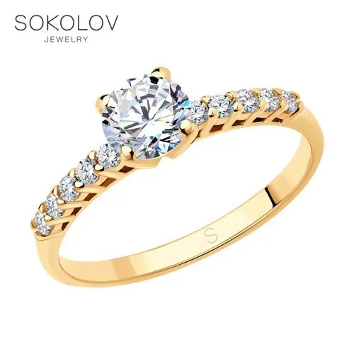 Помолвочное кольцо SOKOLOV из золочёного серебра с фианитами