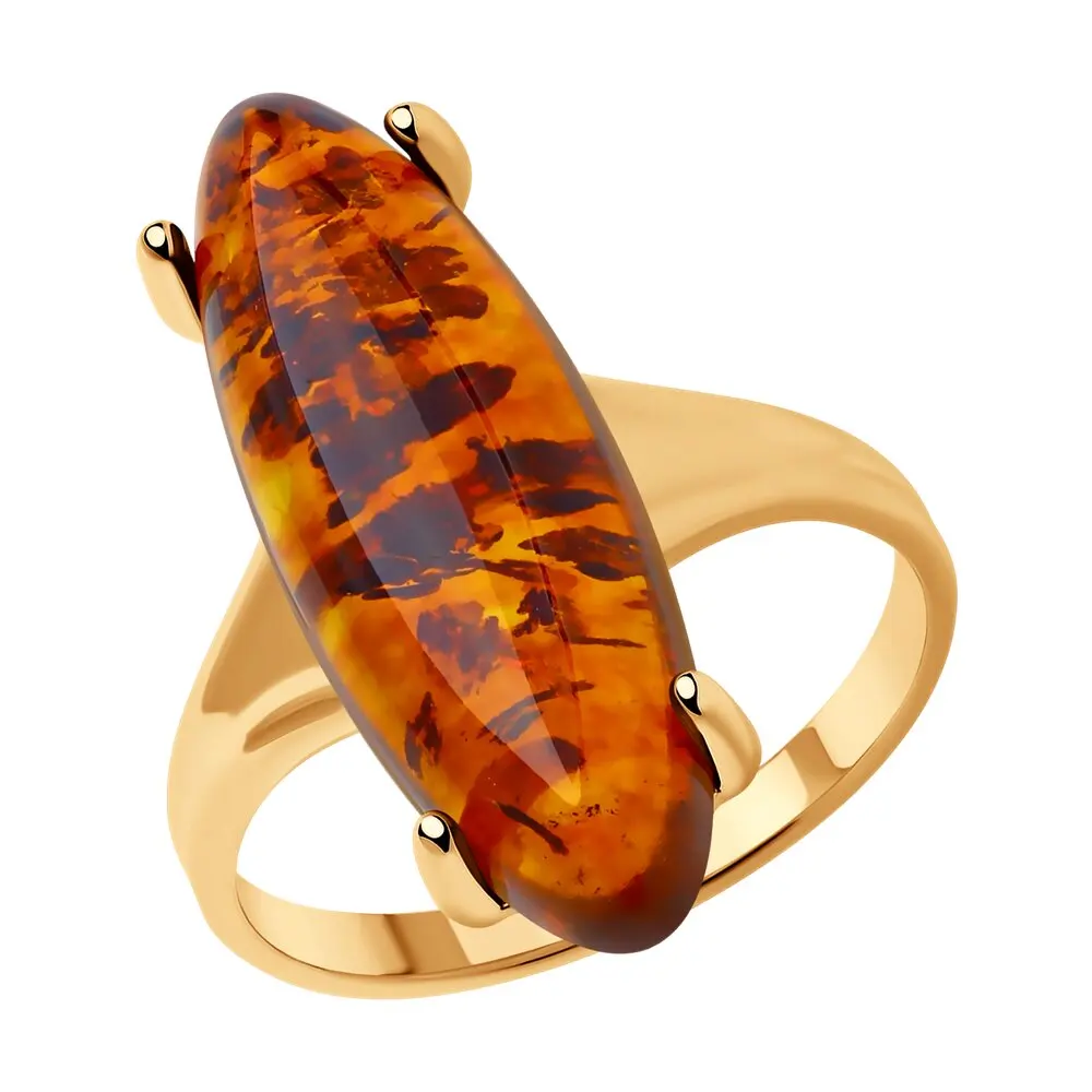 Кольцо SOKOLOV из золочёного серебра с янтарём (пресс.)