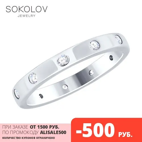 Тонкое кольцо SOKOLOV из серебра с фианитами, Серебро, 925, Женское...