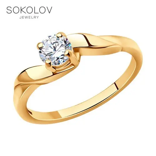 Кольцо SOKOLOV из золота с фианитом, Золото, 585, Женское, Оригинал...