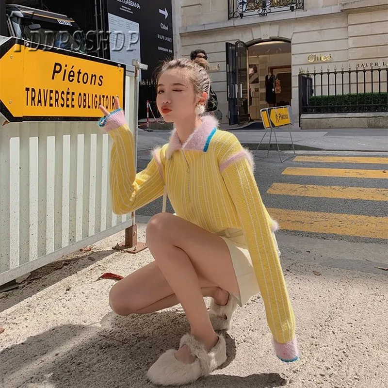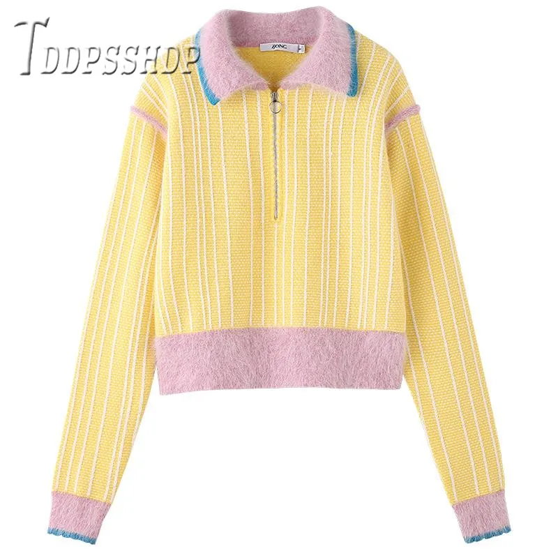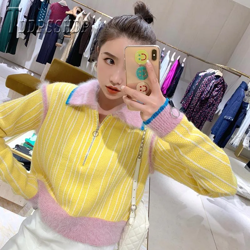 Свитер женский на молнии с лацканами, Осень-зима 2019