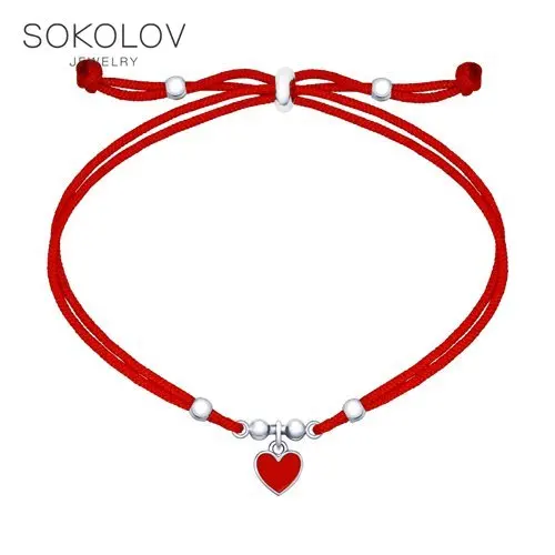 Браслет с серебряной подвеской-сердечком SOKOLOV, Серебро, 925, Браслеты на руку, Оригинальная продукция