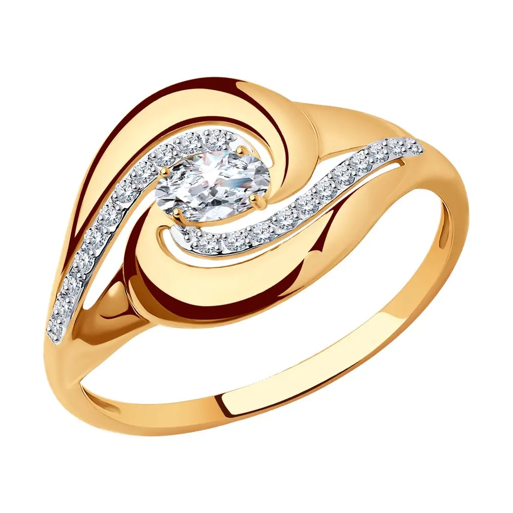 Кольцо SOKOLOV из золочёного серебра с фианитами, Серебро, 925, Женское, Оригинальная продукция