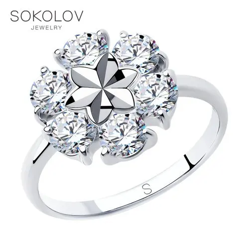 Кольцо SOKOLOV из серебра с алмазной гранью с фианитами, Серебро, 925, Женское, Оригинальная продукция