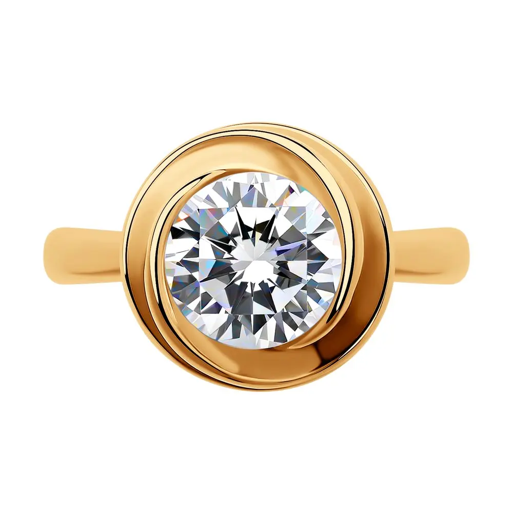 Кольцо SOKOLOV из золочёного серебра с фианитом, Серебро, 925, Женское, Оригинальная продукция