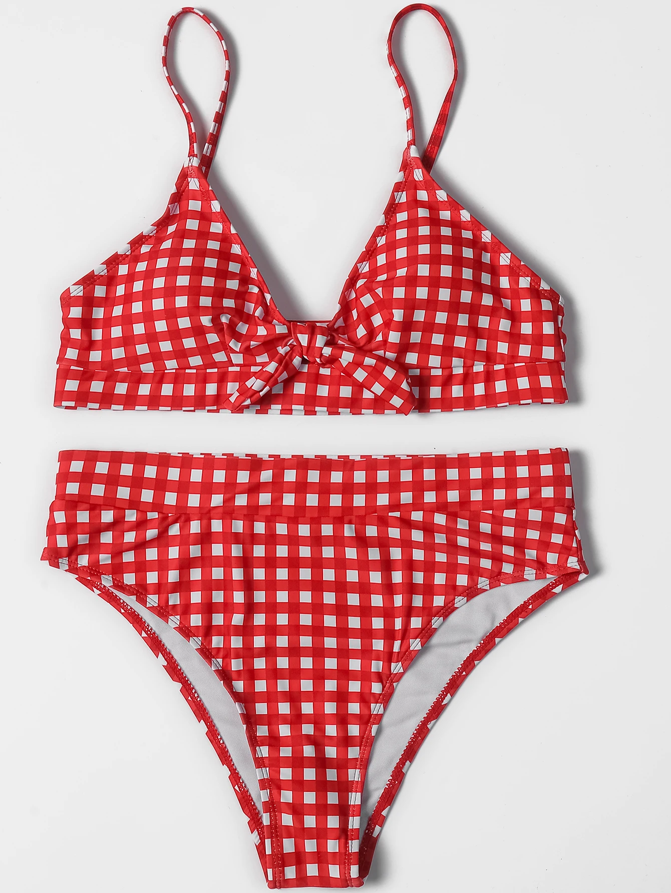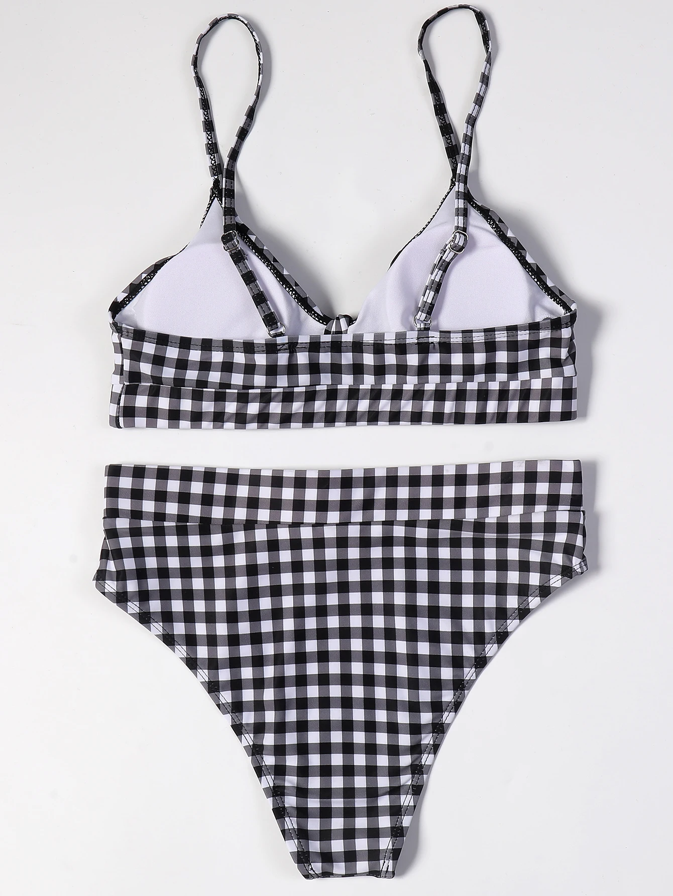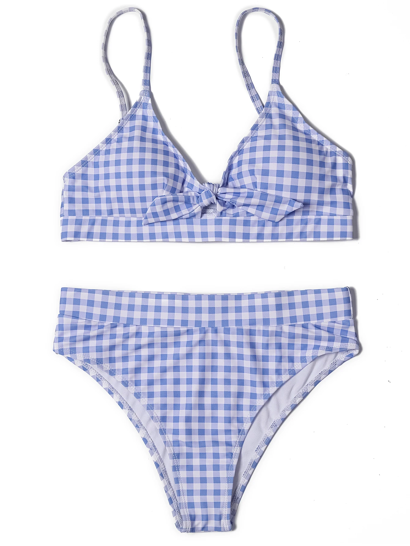 ZTVitality бренд купальник женский 2021 горячая Распродажа купальники Синий Плед Бант пуш-ап бикини сексуальный купальник Бюстгальтер с подкладкой Ремни высокая талия купальник женский раздельный