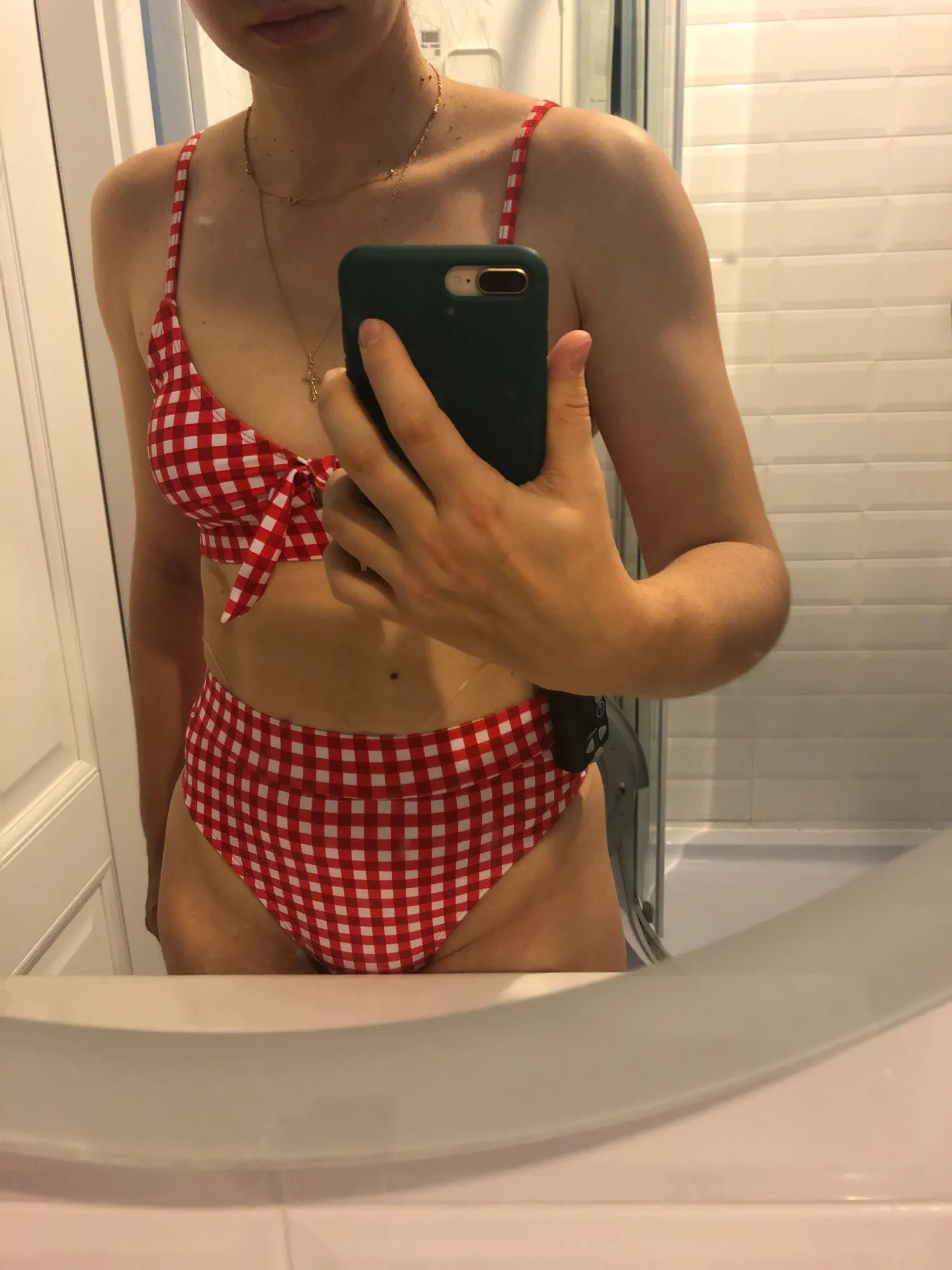 Все супер! Но немного большой. Мои размеры грудь 95 ( под грудью 80) талия 76, бедра 104. Важно знать, что застёжки нет и одевается как топ, так вот на мои параметры L большой под грудью и в чашках. Смело налезет на 50 р или 42 европейский. Плавки тоже можно на размер меньше. А так качество супер