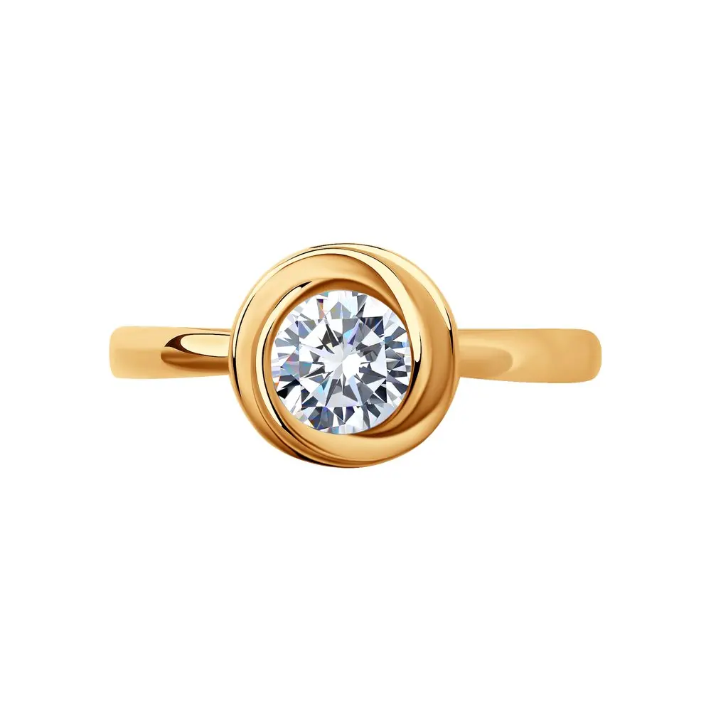 Кольцо SOKOLOV из золочёного серебра с фианитом, Серебро, 925, Женское, Оригинальная продукция