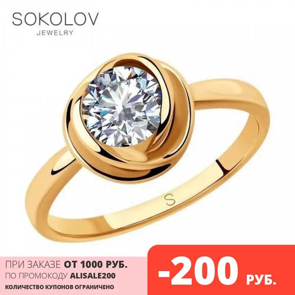 Кольцо SOKOLOV из золота с фианитом, Золото, 585, Женское, Оригинал...
