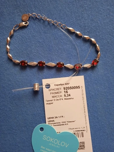 браслет красивый, но замок какой-то не полноценный, зацепается за цепочку, хвост которой болтается, не удобно. на цепочке - замке логотип ,,sokolov,, это зачем? вес тоже меньше заявленного. купила по акции за 2114₽.