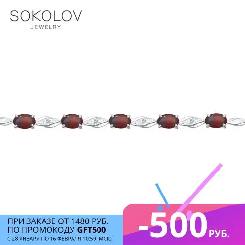 Браслет SOKOLOV из серебра с гранатами и фианитами, Серебро, 925, Браслеты на руку, Оригинальная продукция