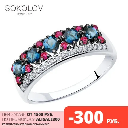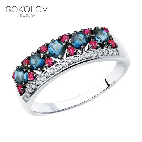 Кольцо SOKOLOV из серебра с топазами и фианитами, Серебро, 925, Жен...