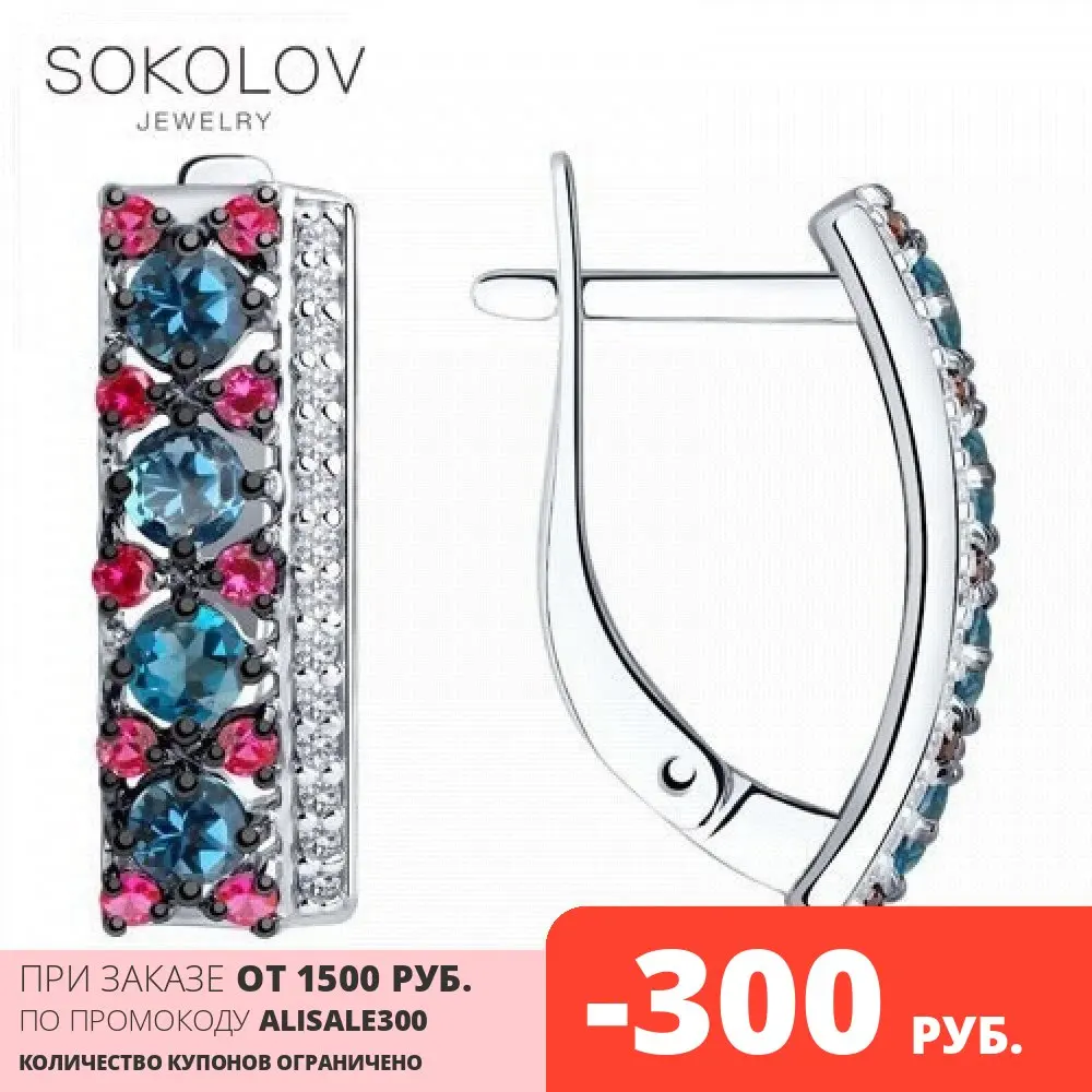 Серьги SOKOLOV из серебра с топазами и бесцветными и красными фианитами, Серебро, 925, Женские, Серьги 2022 тренд