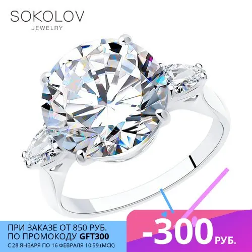 Кольцо SOKOLOV из серебра с фианитом, Серебро, 925, Женское, Оригин...