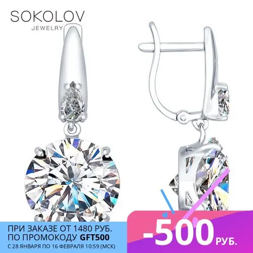 Серьги SOKOLOV из серебра с фианитами, Серебро, 925, Женские, Серьги 2022 тренд, Оригинальная продукция