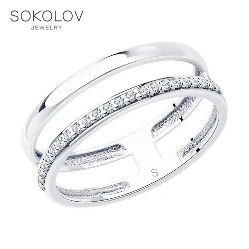 Кольцо SOKOLOV из серебра с фианитами, Серебро, 925, Женское, Ориги...