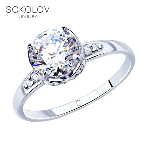 Помолвочное кольцо SOKOLOV из серебра с фианитом, Серебро, 925, Жен...