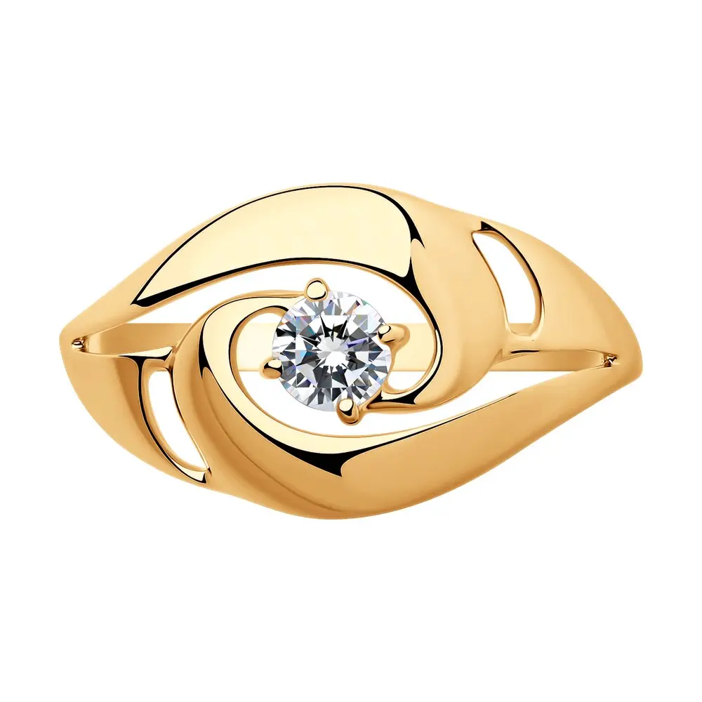 Кольцо SOKOLOV из золочёного серебра с фианитом, Серебро, 925, Женс...