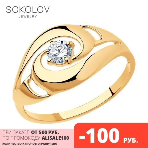 Помолвочное кольцо SOKOLOV из золочёного серебра, Серебро, 925, Жен...