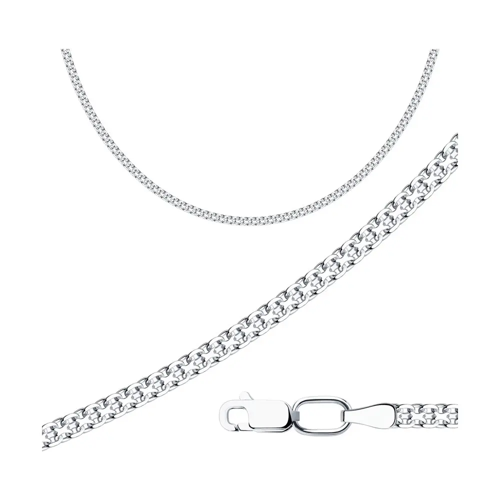 Цепь SOKOLOV из родированного серебра плетения Двойной Бисмарк, Серебро, 925, Цепь на шею, Оригинальная продукция