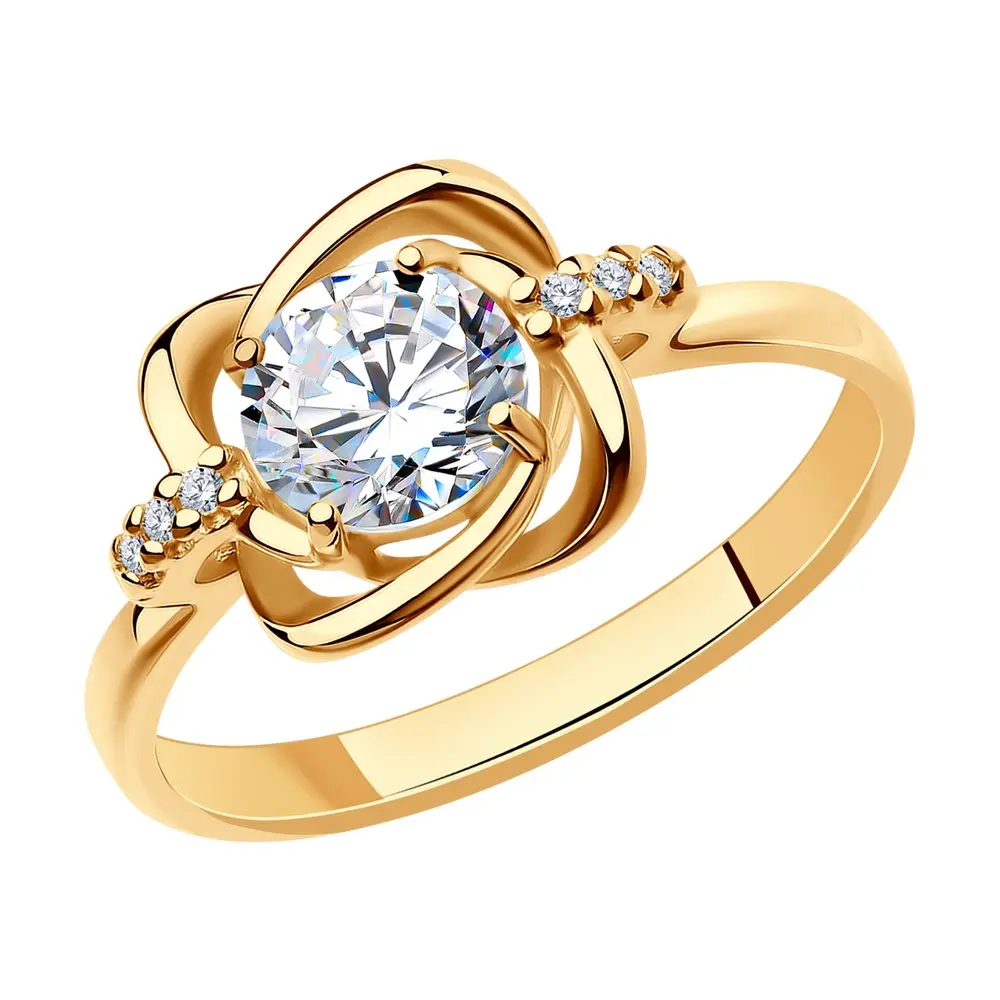 Кольцо SOKOLOV из золочёного серебра с фианитами, Серебро, 925, Жен...