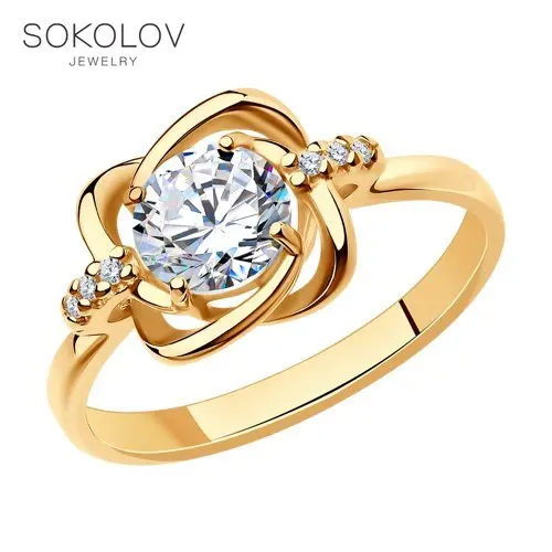 Помолвочное кольцо SOKOLOV из золочёного серебра, Серебро, 925, Жен...