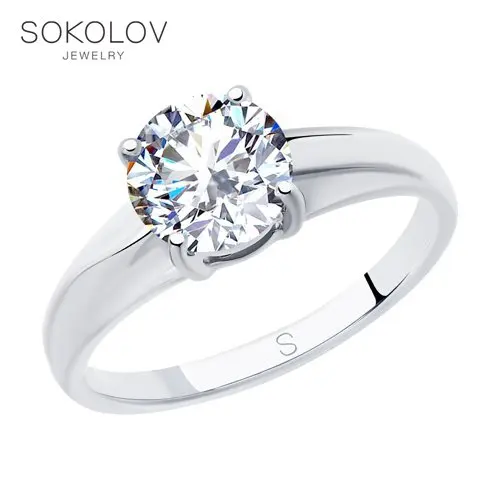 Кольцо SOKOLOV из серебра с фианитом, Серебро, 925, Женское, Оригин...
