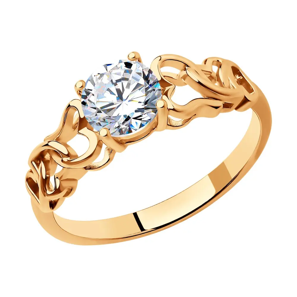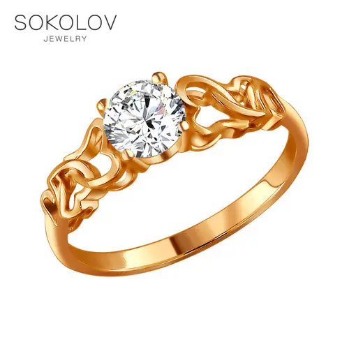 Кольцо SOKOLOV из золочёного серебра с фианитом, Серебро, 925, Женское, Оригинальная продукция