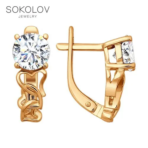 Серьги SOKOLOV из золочёного серебра с фианитами, Серебро, 925, Женские, Серьги 2022 тренд, Оригинальная продукция