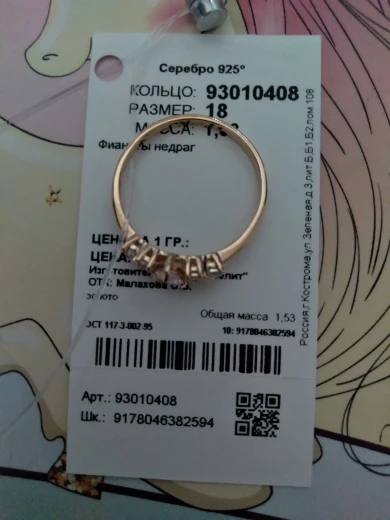 Здравствуйте. Покупаю не первый раз колечки здесь. Клейма ни на одном изделии нет. Все описание состав, вес, камень на бирке.