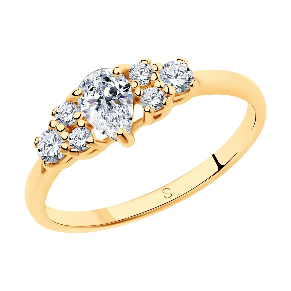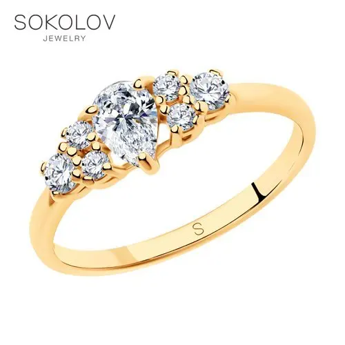 Кольцо SOKOLOV из золочёного серебра с фианитами, Серебро, 925, Жен...