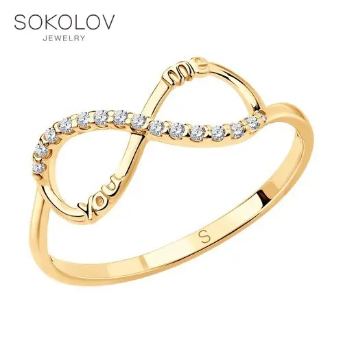 Кольцо бесконечность SOKOLOV из золочёного серебра с фианитами, Серебро, 925, Женское, Оригинальная продукция