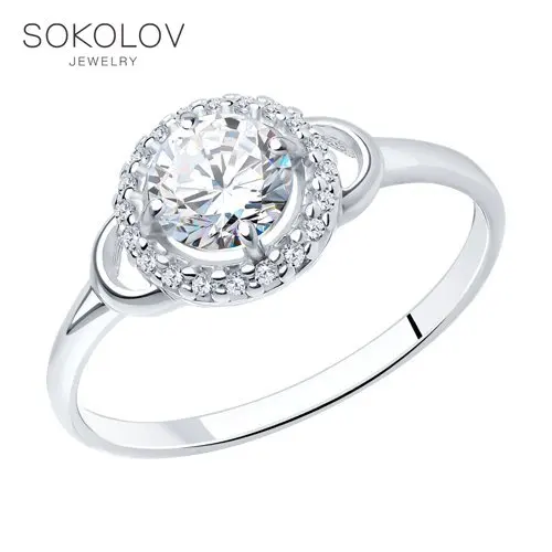 Помолвочное кольцо SOKOLOV из серебра с фианитом, Серебро, 925, Жен...