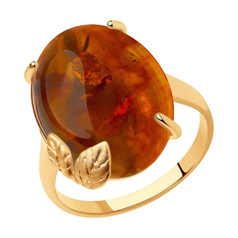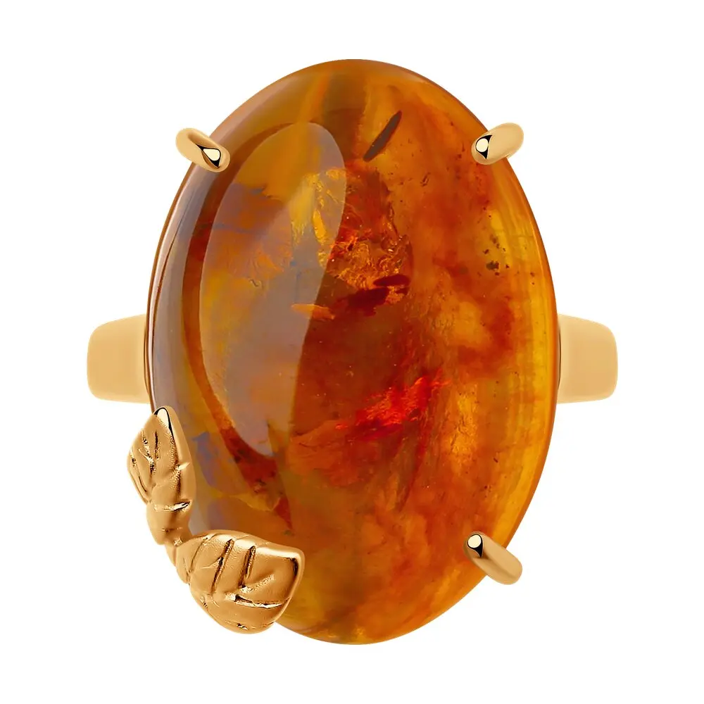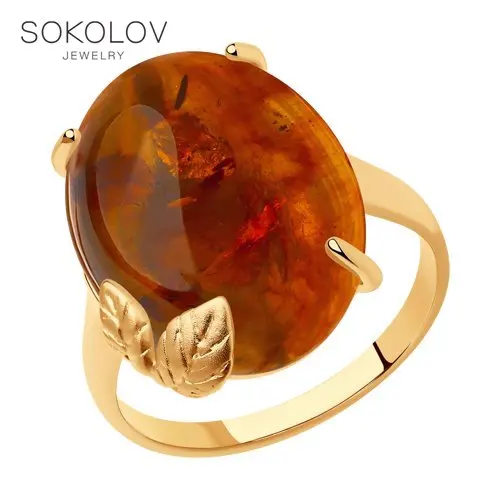 Кольцо SOKOLOV из золочёного серебра с янтарём