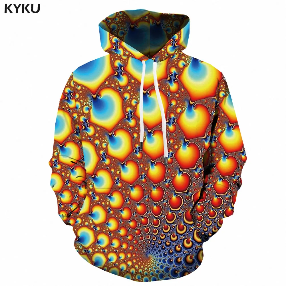 Мужская толстовка KYKU, черная Повседневная Толстовка с капюшоном и длинным рукавом, с 3D-принтом Тетрис, психоделическая толстовка, аниме