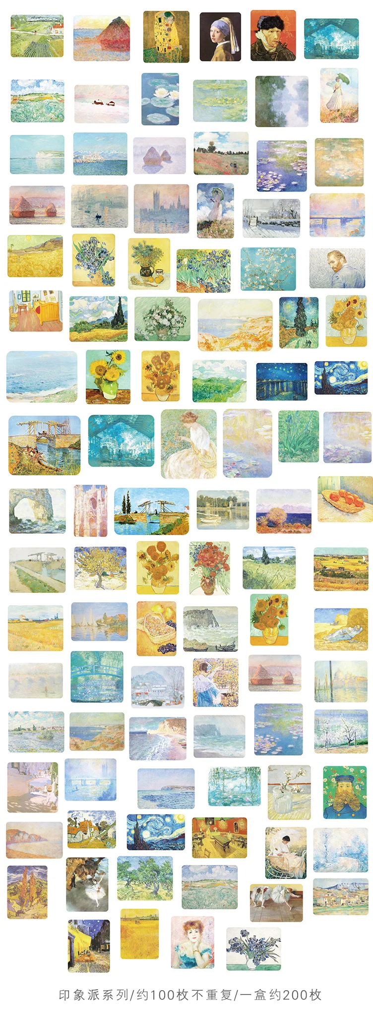 200 шт.упак. импрессионистская серия, цилиндрический журнал, декоративные канцелярские наклейки, скрапбукинг, сделай сам, дневник, альбом-Стик