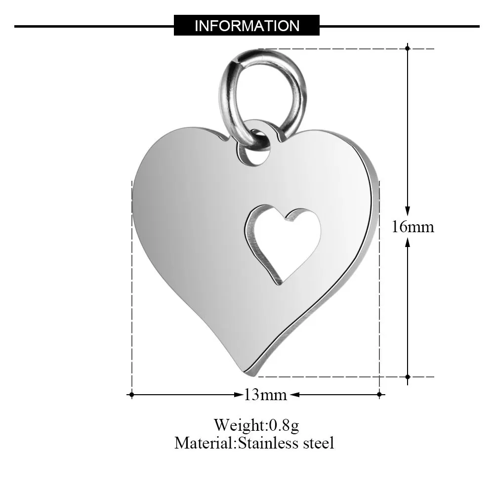 50 шт.лот 316L подвески из нержавеющей стали, полировка сердца, Под...
